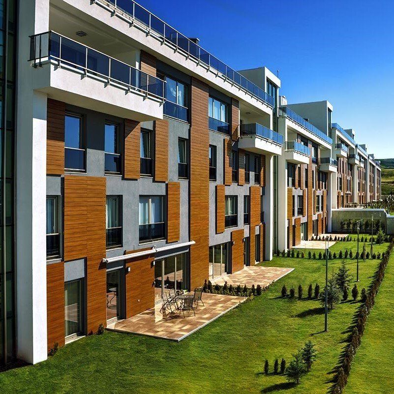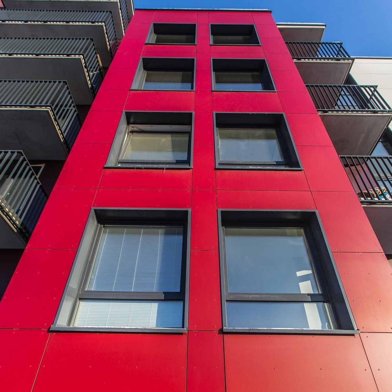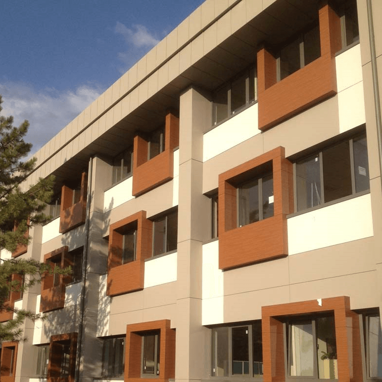 Gentas G-Ext® exterior decorative panels are produced by-pressing impregnated kraft papers together with decorative papers which are EBC (Electron Beam Curing) treated. The process of pressing involves high pressure and temperature. Panels are easy to clean, have low light reflectivity and maintain ultra colour intensity. G-Ext® exterior decorative panels are scratch, impact, chemical, fire and UV resistant.